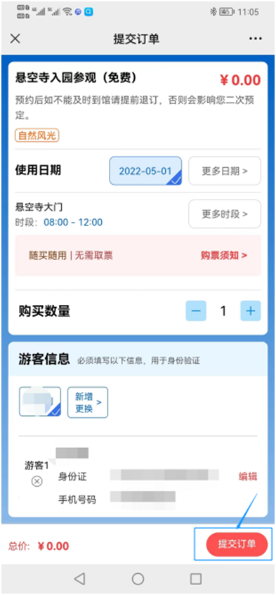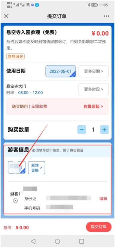 4、選取需要預約的票(piào)種、日期、時(shí)間(jiān)段,實名登記購票(piào)人(rén)個(gè)人(rén)信息。