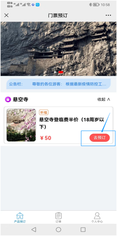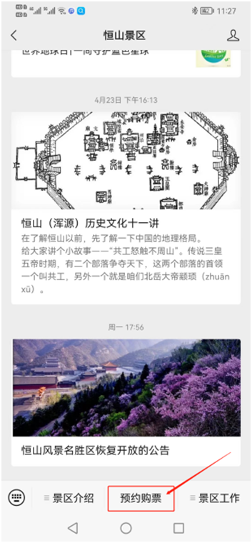 恒山(shān)景區(qū)門(mén)票(piào)預約流程